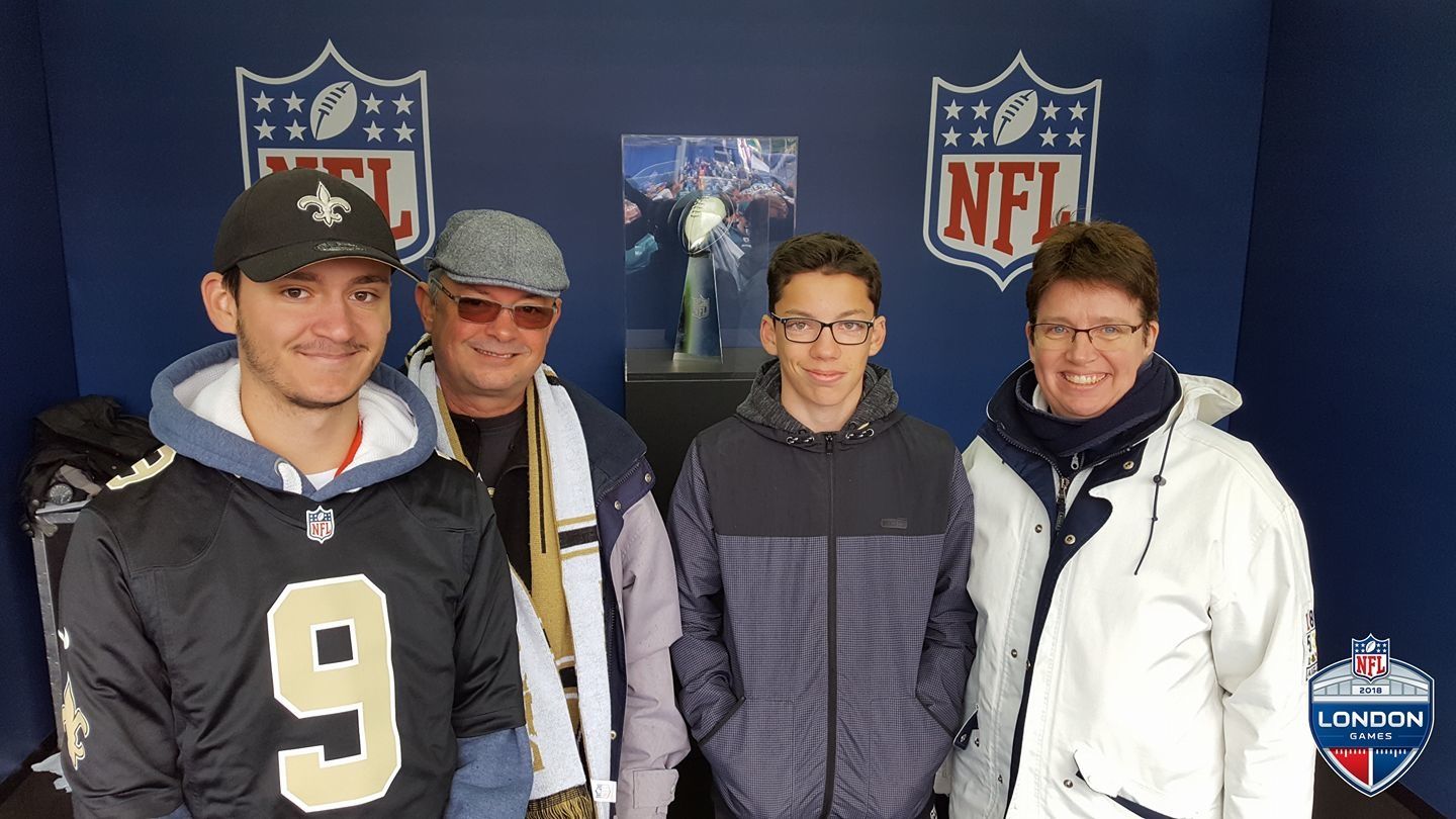 Un point important, le jour du match, on ne prévoit rien d’autre ! Ça prend la journée complète et on rentre bien crevé !!! Le matin est consacré au « Tailgate », parc fermé réservé aux seuls détenteurs de billets du match dans lequel animations, restauration rapide et vente de produits NFL battent leur plein. En arrivant dès l’ouverture à 9h, nous avons pu ainsi nous faire photographier avec le trophée Lombardi du Superbowl, avoir autographes et photos de joueur et de Cheerleaders et faire nos emplettes bien avant d’être cerné par 90.000 personnes ! Eh oui, nous étions à Wembley ! Une heure après notre arrivée, c’était plus de cent fans qui faisaient la queue à chaque animation !!!!